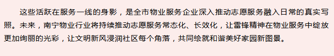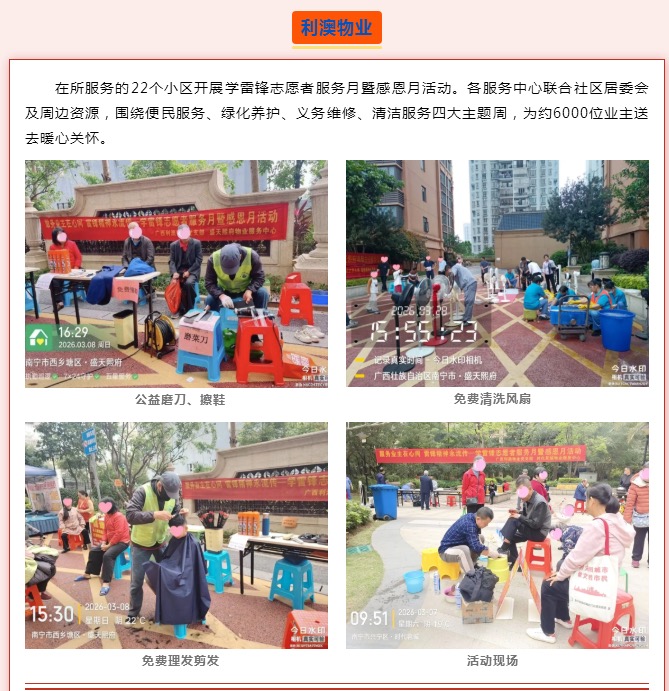 学雷锋 办实事 惠民生丨南宁物业行业“雷锋月”暖心行动纪实